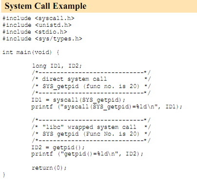 - νλ‘κ·Έλλ° μΈμ΄μμ μ§μνμ§ μλ κΈ°λ₯μ λνμ¬ μ΄μ체μ μ 루ν΄μ νΈμΆνμ¬ μ΄μ©