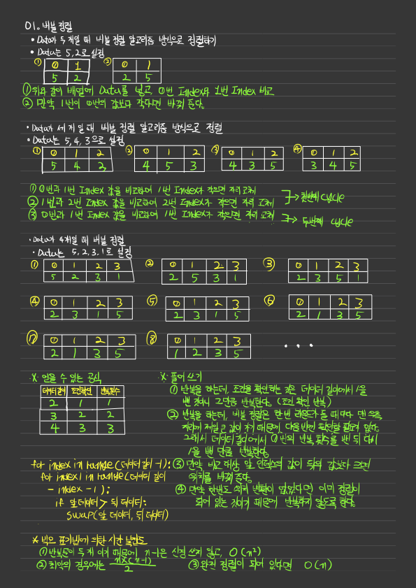 ๋ ์ธ์ ํ Data๋ฅผ ์๋ก ๋น๊ตํด์ ์์ ์๋ Data๊ฐ ๋ค์ ์๋ Data๋ณด๋ค ํฌ๋ค๋ฉด ์๋ฆฌ๋ฅผ ๋ฐ๊พธ๋ ์ ๋ ฌ ์๊ณ ๋ฆฌ์ฆ ์ธ ๊ฒ์ด์์.
