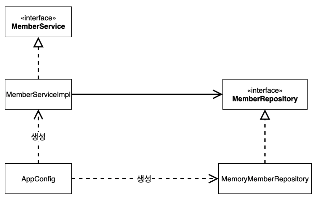 ์ค๊ณ๋ฅผ ๋ณ๊ฒฝํ๋ฏ๋ก, 'MemberServiceImpl'์ 'MemoryMemberRepository'๋ฅผ ์์กดํ์ง ์๊ฒ ๋ ๊ฒ์ด์์.