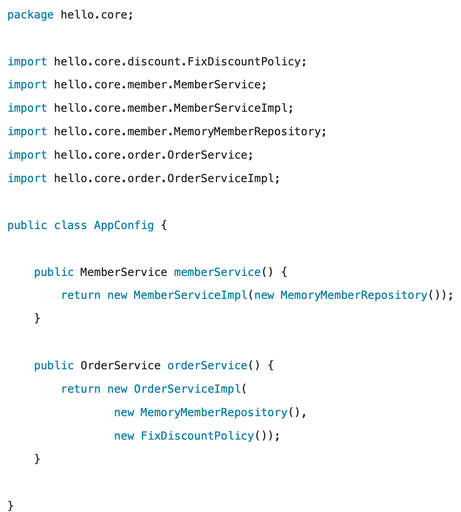 ๊ฐ์ฒด ์์ฑ๊ณผ ์ฐ๊ฒฐ์ 'AppConfig'๊ฐ ๋ด๋นํ๋ ๊ฒ์ด์์.