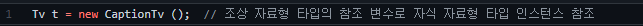 λ€νμ± μ΄μ μλ μλ°μμ μμ±λ μΈμ€ν΄μ€λ₯Ό λ€λ£¨κΈ° μν΄ μΈμ€ν΄μ€μ μλ£ν νμ κ³Ό μΌμΉνλ νμ μ μ°Έμ‘° λ³μλ§ μ¬μ©νμλ κ²μ΄μμ. μ¦, TvμΈμ€ν΄μ€λ₯Ό λ€λ£¨κΈ° μν΄ Tv μλ£ν νμ μ μ°Έμ‘° λ³μλ₯Ό μ¬μ©νκ³ , CaptionTv μΈμ€ν΄μ€λ₯Ό λ€λ£¨κΈ° μν΄μλ CaptionTv νμ μ μ°Έμ‘° λ³μλ₯Ό μ¬μ©ν΄μΌ νλ κ²μ΄μμ.