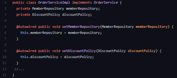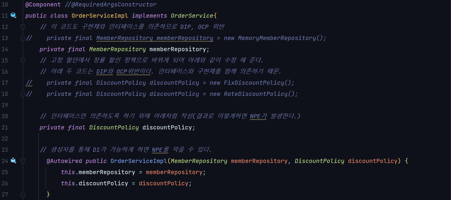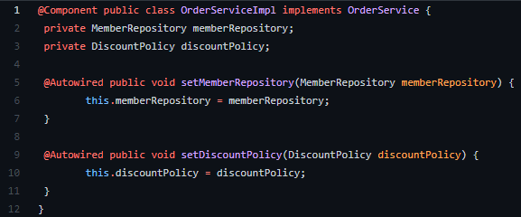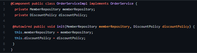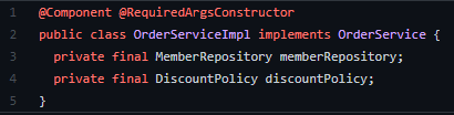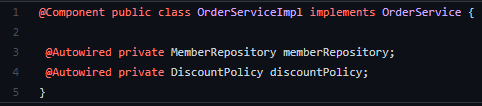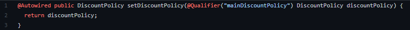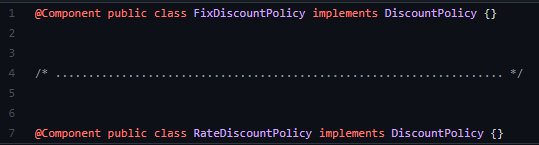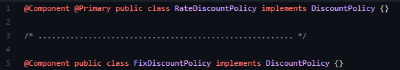 ์ด ๋, fixDiscountPolicy, rateDiscountPolicy๊ฐ ์ฃผ์ ๋๋ ๊ฒ์ด์์.