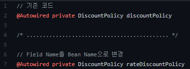 ์ด๋ ๊ฒ ํ๋ฉด Field Name์ด rateDiscountPolicy์ด๊ธฐ ๋๋ฌธ์ ์ ์ ์ฃผ์ ๋๋ ๊ฒ์ด์์.
