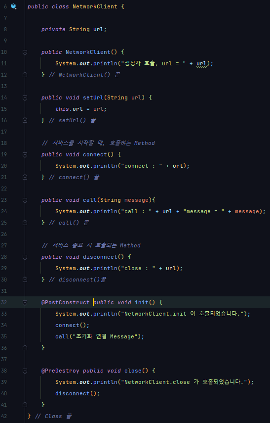 @PostConstruct, @PreDestroy ์ด๊ฒ๋ง ์ฌ์ฉํ๋ฉด ๊ฐ์ฅ ํธ๋ฆฌํ๊ฒ ์ด๊ธฐํ์ ์ข ๋ฃ๋ฅผ ํ ์ ์๋ ๊ฒ์ด์์.