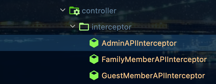 ์ฃผ๋ํ๋์ด ์ด์ฉ์ ๋ฑ๊ธ์ 3๊ฐ์ง๋ก ๋๋์๊ณ , ๊ทธ๋ ๊ธฐ ๋๋ฌธ์ ADMIN, FAMILY, GUEST๋ก์จ์ ๊ฐ๊ฐ์ Interceptor๋ค์ด ๋ง๋ค์ด์ง ๊ฒ์ด์์. ๊ฐ๊ฐ์ Interceptor๋ค์ ์์ ๋ด์ฉ์ด ๋์ผํ๊ธฐ ๋๋ฌธ์ ์ค๋์ ์ฌ๊ธฐ๊น์ง ๊ณต๋ถ ํด ๋ณด๋๋ก ํ๊ฒ ์ต๋๋ค!