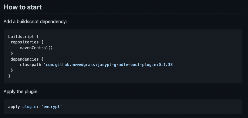 - Jasypt (Gradle) Git Hub μ£Όμ : https://github.com/mowedgrass/jasypt-gradle-boot
