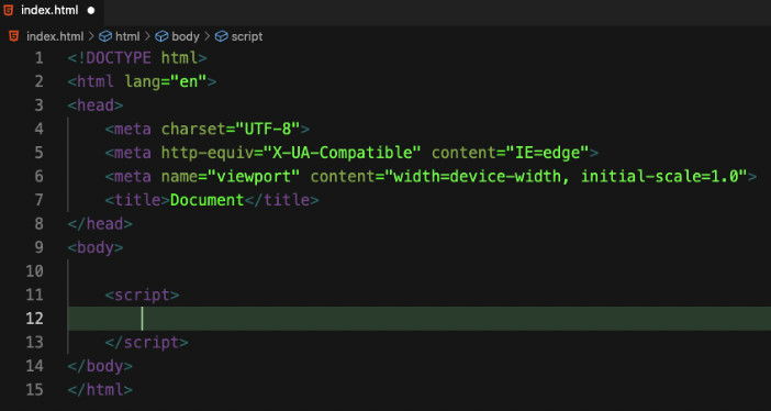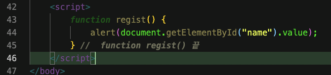 ์์ ๊ฐ์ด <body> ์์ ์ค์ ์ ์ผ๋ก ์ฐ๋ฆฌ๊ฐ๊ฐ javascipt๋ฅผ ์์ฑํ <script> ์์ ๋ฃ์ด ์ฃผ์ด์ผ ํ๋ ๊ฒ์ด์์.