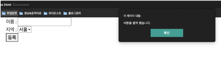 alert์ html์ด ๊ฐ์ง๊ณ ์๋ ๊ธฐ๋ณธ ํจ์์ธ๋ฐ, ๊ฒฝ๊ณ ์ฐฝ์ ๋์ด์ฃผ๋ ์น๊ตฌ ๋๋๋ค!
