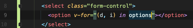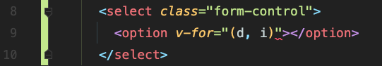 ์์ ๊ฐ์ด select Tag๋ฅผ ํตํด option Tag๋ฅผ ๋ง๋ค์ด v-for๋ฅผ ๋ง๋ค์๋๋ฐ, ์ด๊ฑด for๋ฌธ์ธ ๊ฒ์ด์์.