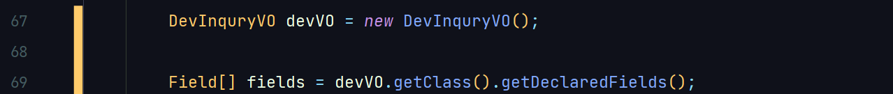 ๊ทธ๋ฐ ๋ค devVO์ ๋ด๋ถ ํ๋กํผํฐ๋ฅผ Field Class๋ฅผ ์ด์ฉํด์ ๊ฐ์ ์ด์ฉํ๋ ค๊ณ ํ๋ ๊ฒ์ด์์.