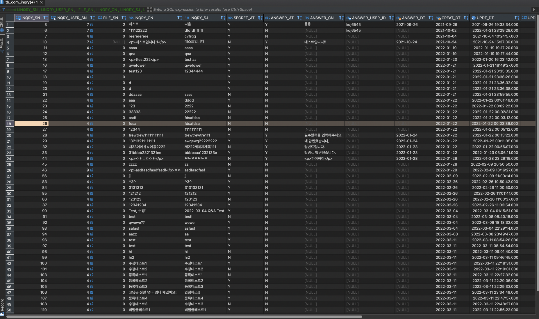and ์กฐ๊ฑด์ ์ ํตํด ๊ฒ์๊ธ ์ผ๋ จ๋ฒํธ (INQRY_SN) ๊ฐ์ ๋ฐ์ ํด๋น ๋ด์ฉ์ ์กฐํํ๋ ๊ฒ์ด์์.