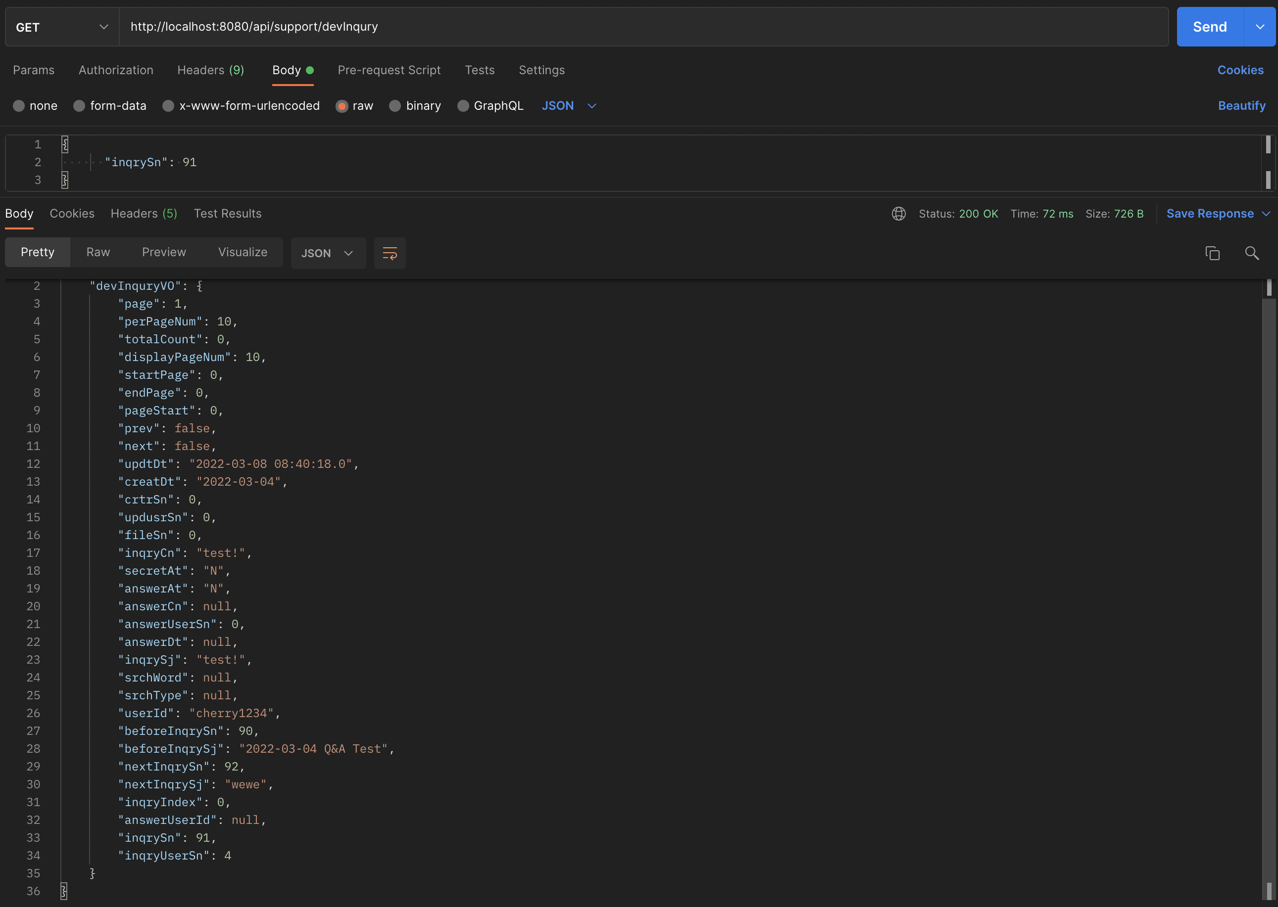 ์ ํตํด์ ๊ฒ์๊ธ ์ผ๋ จ๋ฒํธ (inqrySn)์ด null์ธ์ง ํน์ ๋น์ด์๋์ง๋ฅผ ํ์ธ ํ ๋ค ๋น์ด์์ง ์์ผ๋ฉด if์ ์์