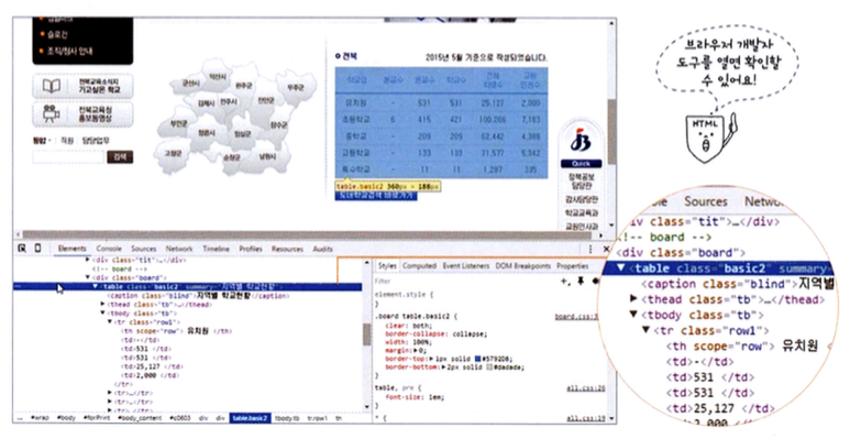 ν¬λ‘¬μμ μΉ λ¬Έμλ₯Ό μ΄μ΄ νΉμ λΆλΆμ λ§μμΌ μ€λ₯Έμͺ½ λ²νΌμΌλ‘ ν΄λ¦νκ³ [κ²μ¬]λ₯Ό μ ννλ©΄ κ°λ°μ λꡬ μ°½μ΄ μ΄λ¦¬λ©΄μ μ νν λΆλΆμ νκ·Έκ° κ°μ‘° λμ΄ μ§λ€.μΆμ² : HTML5 CSS3 μΉ νμ€μ μ μ P.81
