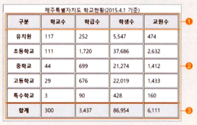 μΌλΆ νμμλ μ λͺ©μ΄ νμλ μ κ³Ό μλ£κ° νμλ μ μΈμλ ν μλμͺ½μ ν©κ³λ μμ½ λ΄μ©μ νμνκΈ°λ νλ κ²μ΄μμ. μ΄λ° νμ κ° μ μ μ λͺ©μ΄ μλ λΆλΆκ³Ό μ€μ λ΄μ©μ΄ μλ λ³Έλ¬Έ κ·Έλ¦¬κ³ , μμ½λΆμ νμ ꡬ쑰λ₯Ό λλμ΄μ μ΄μ©νλ κ² μ’μ κ²μ΄μμ. μ΄ λ, μ¬μ©νλ νκ·Έλ€μ tableμ tμ μ λͺ©μ μλ―Ένλ head, λ³Έλ¬Έμ μλ―Ένλ body, μμ½ λΆλΆμ μλ―Ένλ footμ΄λ λ§μ΄ ν©μ³μ§ <thead>μ <tbody>, <tfoot>μΈ κ²μ΄μμ.