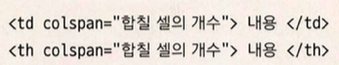 μ¬λ¬ μ΄μ νλλ‘ ν©μΉλ €λ©΄ <td>, <th>μμ colspan μμ±μ μ΄μ©ν΄ λͺ κ°μ μ μ κ°λ‘λ‘ ν©μΉ μ§ κ²°μ ν μ μλ κ²μ΄μμ.