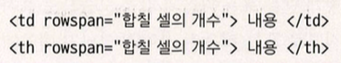 νμ ν©μΉλ κ²λ λμΌν κ²μ΄μμ. <td>, <th>μμ rowspan μμ±μ μ΄μ©ν΄ μΈλ‘λ‘ ν©μΉ μ μ κ°μλ₯Ό μ§μ ν΄ μ£Όλ©΄ λλ κ²μ΄μμ.