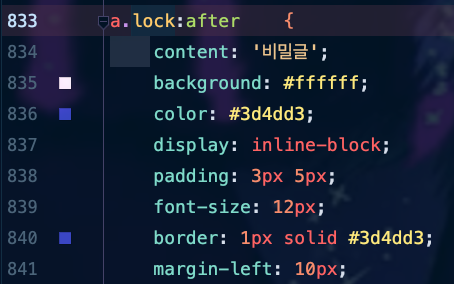 ์ด๋ฅผ ํด์ํด ๋ณด๋ฉด ๋จผ์ list์์ ์์ secretAt(๋น๋ฐ๊ธ ์ฌ๋ถ)์ ๊ฐ์ด 'N' ์ฆ, false์ด๋ฉด ๋น๋ฐ๊ธ์ด ์๋ ๊ฒ์ด๋๊น style.css ๋ด์ ellipsis ์ด๋ฆ์ css๋ก ๊พธ๋ฉฐ์ ๋ณด์ฌ์ฃผ๊ณ , secreatAt์ด ์ฐธ์ด๋ฉด ๋์ผํ css๋ฅผ ์ฌ์ฉํ๋, sub.css๋ด lock๊ด๋ จ CSS๋ฅผ ์ถ๊ฐ์ ์ผ๋ก ์ฌ์ฉํ์ฌ ๋น๋ฐ๊ธ ํ์๊ฐ ๋๋๋ก ๋ง๋ค์ด ์ฃผ๋ ๊ฒ์ด์์.