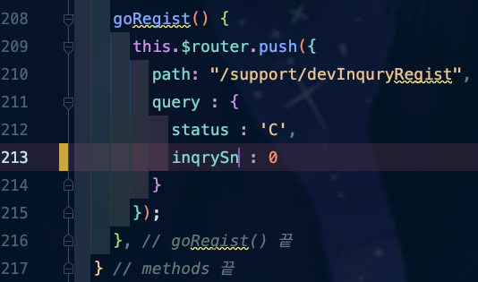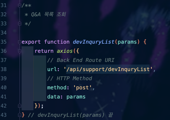 ์ด์ ๋ค์ ํด๋น Method๋ฅผ ํธ์ถํ์๋ DevInquryList.vue์ methods ์์ฑ์ผ๋ก ๊ฐ๋ณด๋ฉด