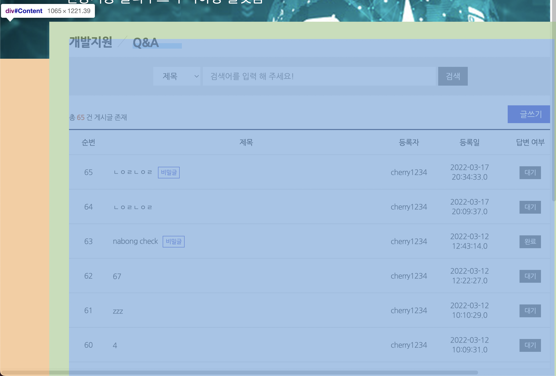 ์ด์ Q&A ๊ฒ์ํ์์ ๊ฒ์๊ธ์ ๊ฒ์ํ ์ ์๋ธ ๋ถ๋ถ์ ํ๋ฒ ๋ง๋ค์ด ๋ณผ ๊ฒ์ด์์.