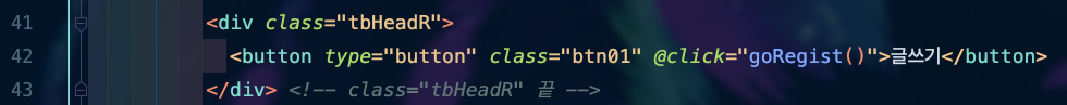 <button type="button" class="btn01" @click="goRegist()">๊ธ์ฐ๊ธฐ</button>