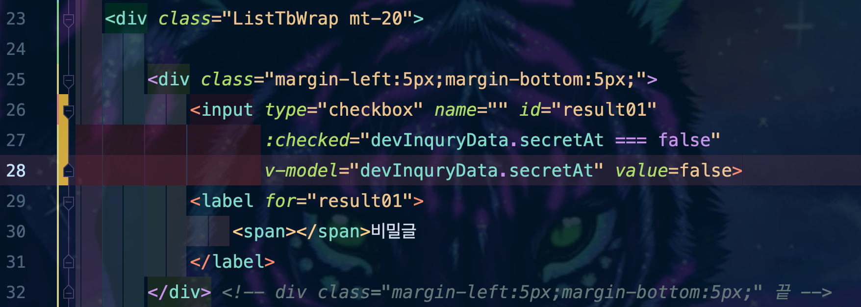 <input type="checkbox" name="" id="result01" :checked="devInquryData.secretAt === false" v-model="devInquryData.secretAt" value=false>