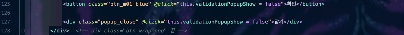 <button class="btn_m01 blue" @click="this.validationPopupShow = false">ํ์ธ</button>