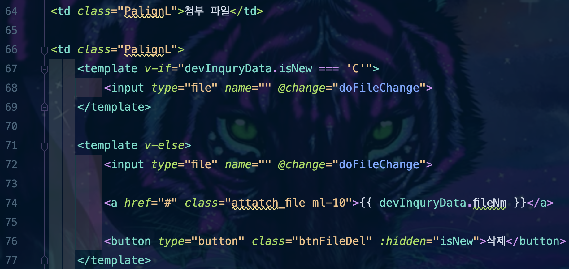๋ฑ๋ก Logic ์ํ์ด ๋ง๋ค๋ฉด 68๋ฒ์งธ ์ค์ด ์ํ ๋๋๋ฐ, <input> Tag๋ก ์์ฑ file์ ๋ฃ์ด File์ Uploadํ ์ ์๋ ํ๊ฒฝ์ ๋ง๋ค๊ณ , Event๊ฐ ๋ฐ์ํ๊ฒ ๋๋ฉด doFileChange๋ผ๋ Method๋ฅผ ํธ์ถํ๊ฒ ๋๋ ๊ฒ์ด์์. ๊ฒฐ๊ตญ ์ด์ฉ์๊ฐ ์ด๋ค File์ ์ ํํ๊ฒ ๋๋ฉด ํด๋น Method๊ฐ ํธ์ถ๋๋ ๊ฒ์ด์์.