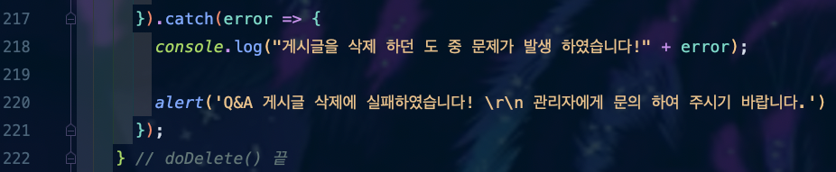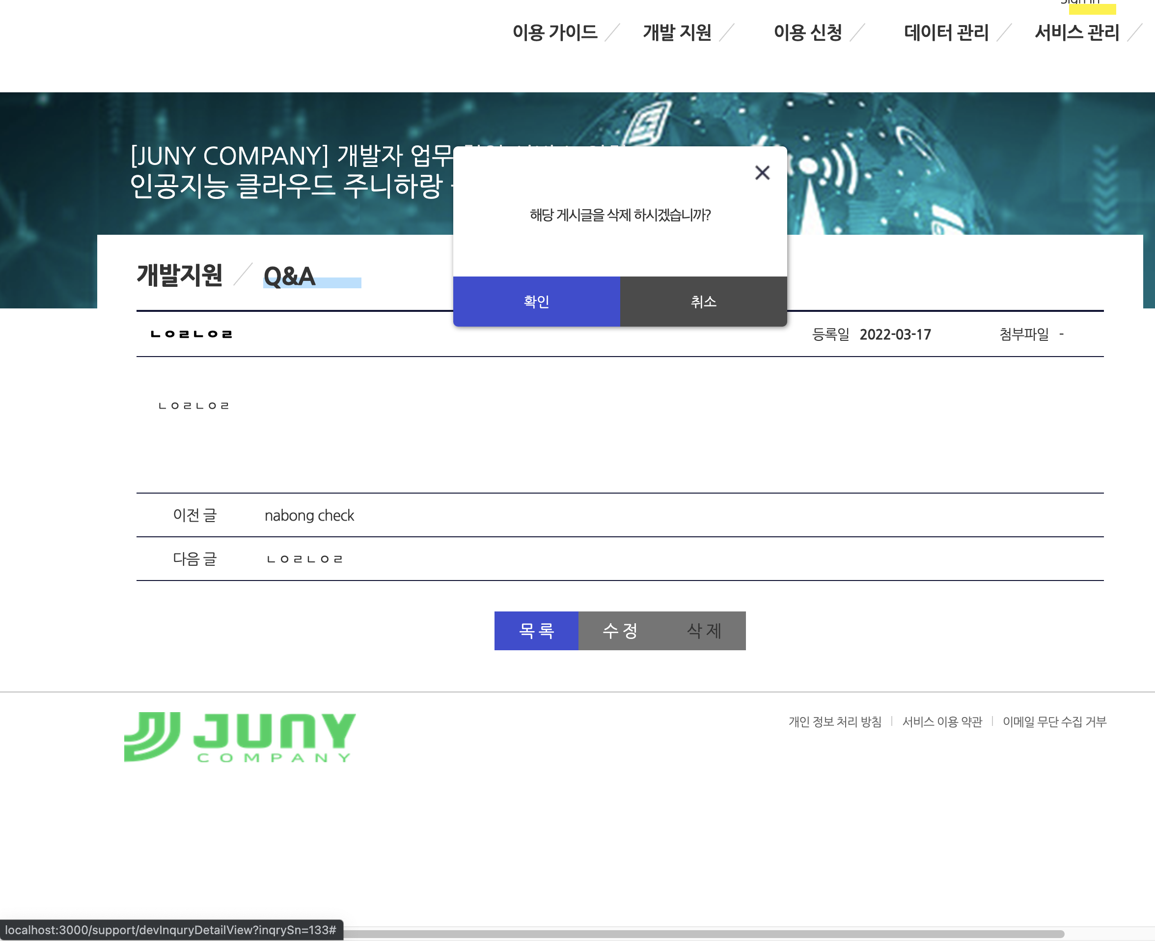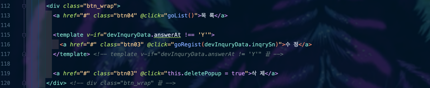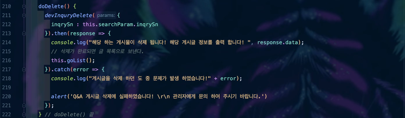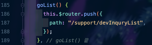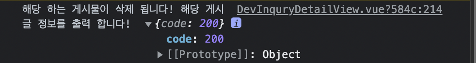 ์ ์ฝ๋ `DevInquryDetailView.vue - 112 ~ 119`๋ฅผ ๋ณด๊ฒ ๋๋ฉด 119๋ฒ์งธ๊ฐ`์ญ์ ` Logic์ ์์์ ์ธ ๊ฒ์ด์์.