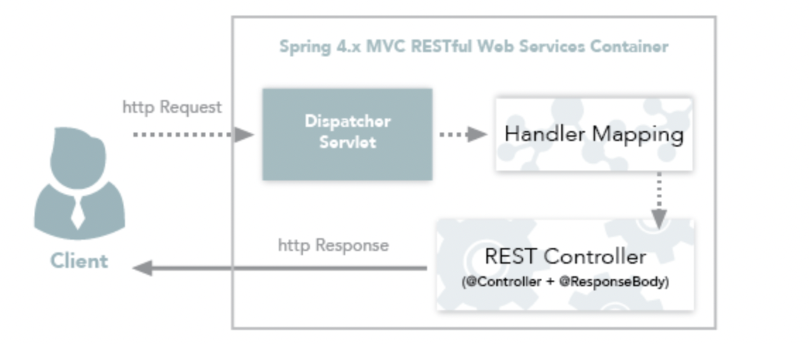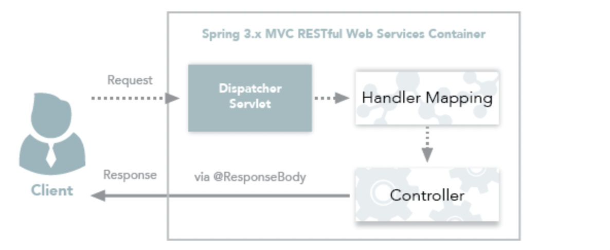 ์ ํต์ ์ธ Spring MVC Controoler์ธ `@Controller`๋ ์ฃผ๋ก View ๋ณํํ๊ธฐ ์ํด ์ฌ์ฉํ๋ ๊ฒ์ด์์. ์๋ ๊ทธ๋ฆผ๊ณผ ๊ฐ์ ๊ณผ์ ์ ํตํด Spring MVC Controller๋ Client์ ์์ฒญ์์ View๋ฅผ ๋ฐํํ๋ ๊ฒ์ด์์.