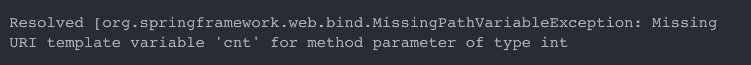 ๋ง์ฝ ์์ ๊ฐ์ด '1'์ ๋ฃ์ด์ฃผ์ง ์๊ณ , `http://localhost:8080/test/`์ด๋ ๊ฒ๋ง ์์ฒญ์ ๋ณด๋ด๊ฒ ๋๋ฉด ์๋์ ๊ฐ์ Error๊ฐ ๋ฐ์ํ๊ฒ ๋๋ ๊ฒ์ด์์.