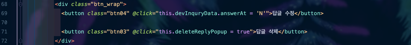 '๋ต๊ธ ์ญ์ '๋ 71๋ฒ์งธ ์ค์ '๋ต๊ธ ์ญ์ ' Button์ ๋๋ฅด๋ฉด์ ์์๋๋๋ฐ, ์ด ๋ click Event๋ก `deleteReplyPopup` ์ด๋ผ๋ ๋ณ์๊ฐ true๊ฐ ๋๋ฉด์ ์์ ๋๋ ๊ฒ์ด์์.