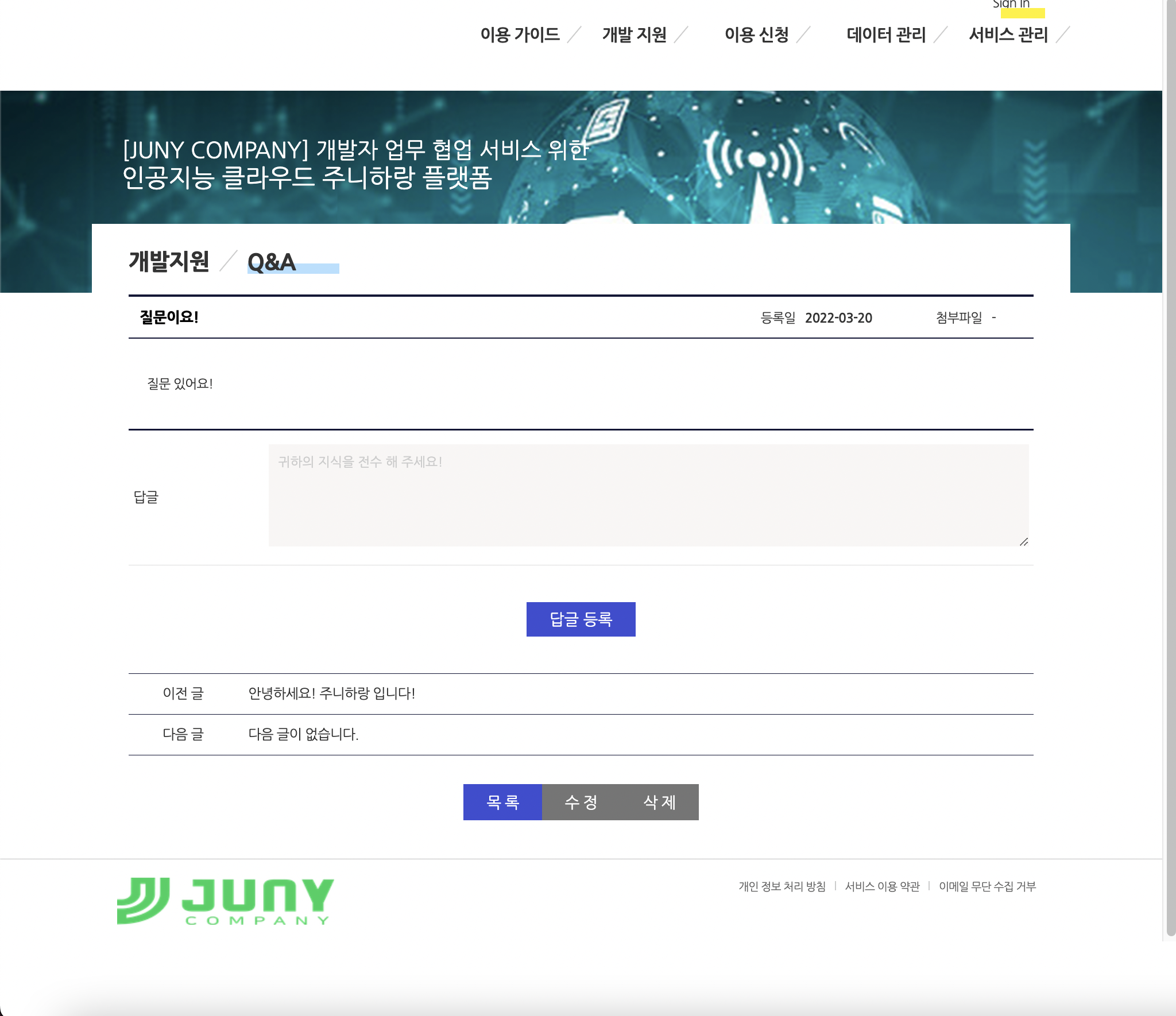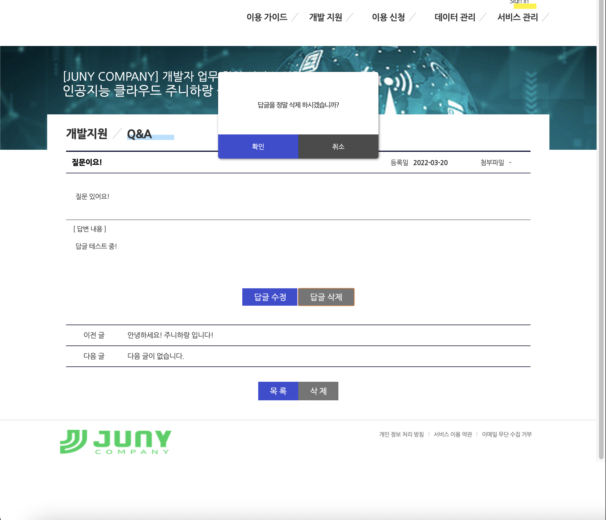 ์ด๋ ๊ฒ ๋๋ฉด ๋ต๊ธ์ด ์ญ์ ๋๊ณ ๋์ ๋ค์ ํด๋น ๊ฒ์๊ธ ์ผ๋ จ๋ฒํธ์ ๋ง๋ ๊ฒ์๊ธ ์์ธ ์กฐํ Page๊ฐ Rendering ๋๊ฒ ๋๊ณ , ๋ต๊ธ์ ์ ๋ ฅํ ์ ์๋ ์ํ์ ์์ธ ์กฐํ Page๊ฐ ์๋์ ๊ฐ์ด ๋ํ๋๊ฒ ๋๋ ๊ฒ์ด์์.