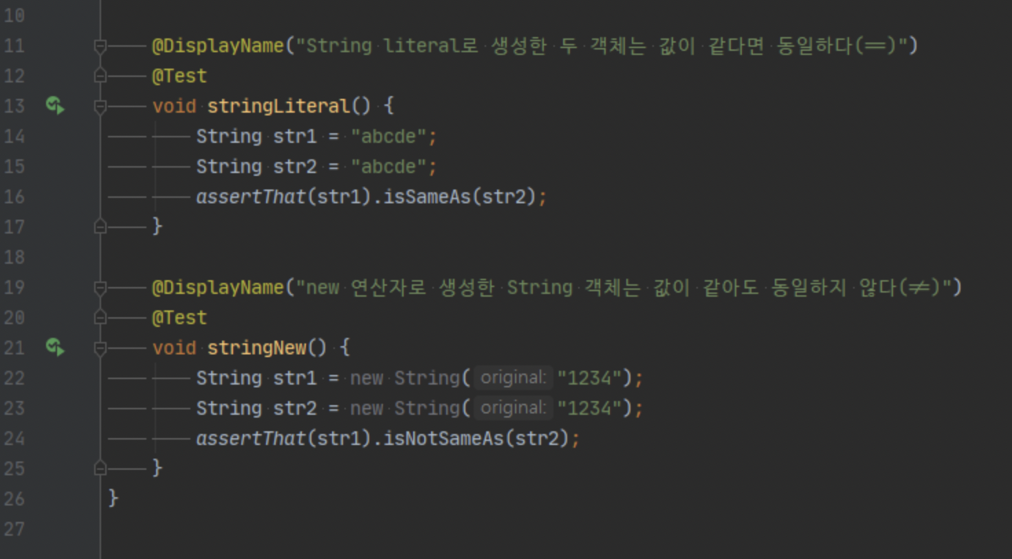 ๊ทธ๋ ๊ธฐ ๋๋ฌธ์ String literal๋ฅผ ์ด์ฉํ์ฌ String ์์ฑ์ ํ๋ ๊ฒ์ด ์ข์ ๋ฐฉ๋ฒ์ด๋๋๋ค.