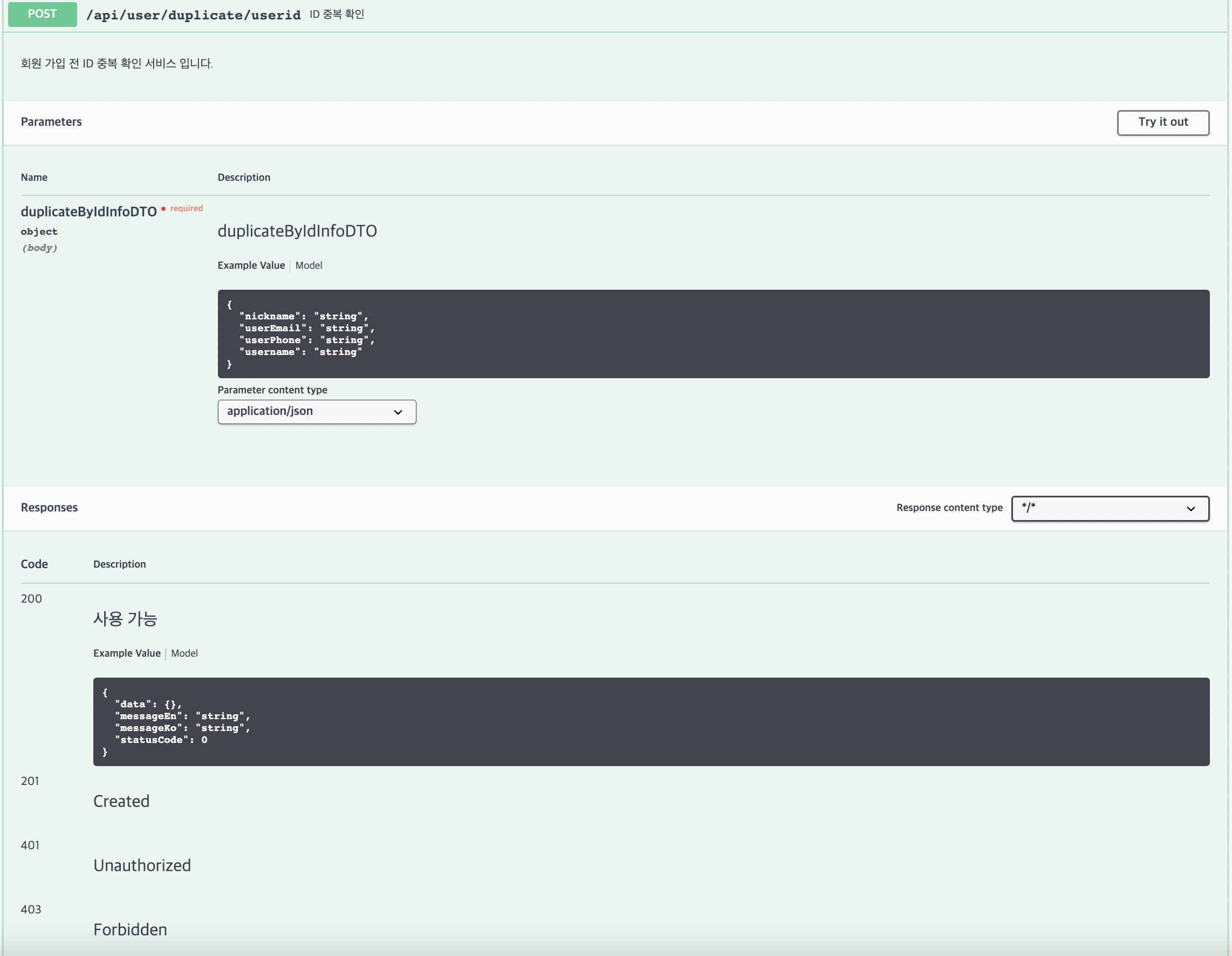 @ApiParam(name = "DuplicateByIdInfoDTO", value = "์ด์ฉ์ ์ํ๋ ์ด์ฉ์๊ฐ ํ์ ๊ฐ์