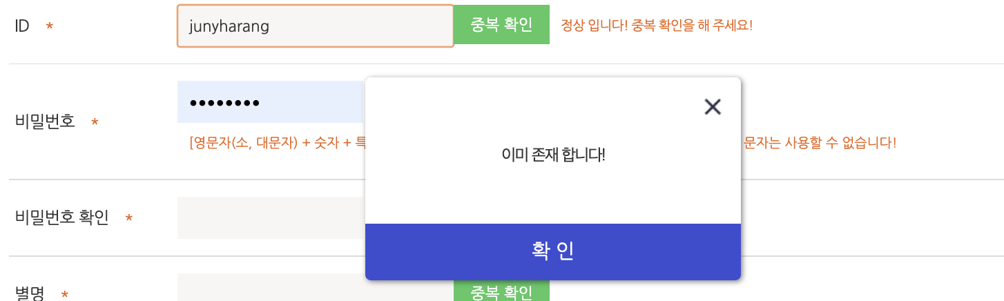 ๊ทธ๋ผ ๋ง์ฝ ์ ํจ์ฑ ๊ฒ์ฌ๋ฅผ ์คํจ ํ์ ๋, ์ค๋ณต ํ์ธ Button์ ๋๋ฅด๋ฉด ์ด๋ป๊ฒ ๋ ๊น์?