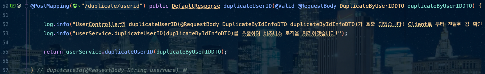 "message": "Validation failed for object='duplicateByUserIDDTO'. Error count: 1",