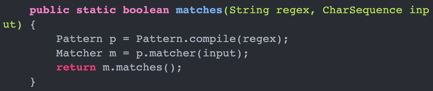 โ `matches()`๋ `String`์ ์ฌ์ฉํ ์ ์๋ Method.