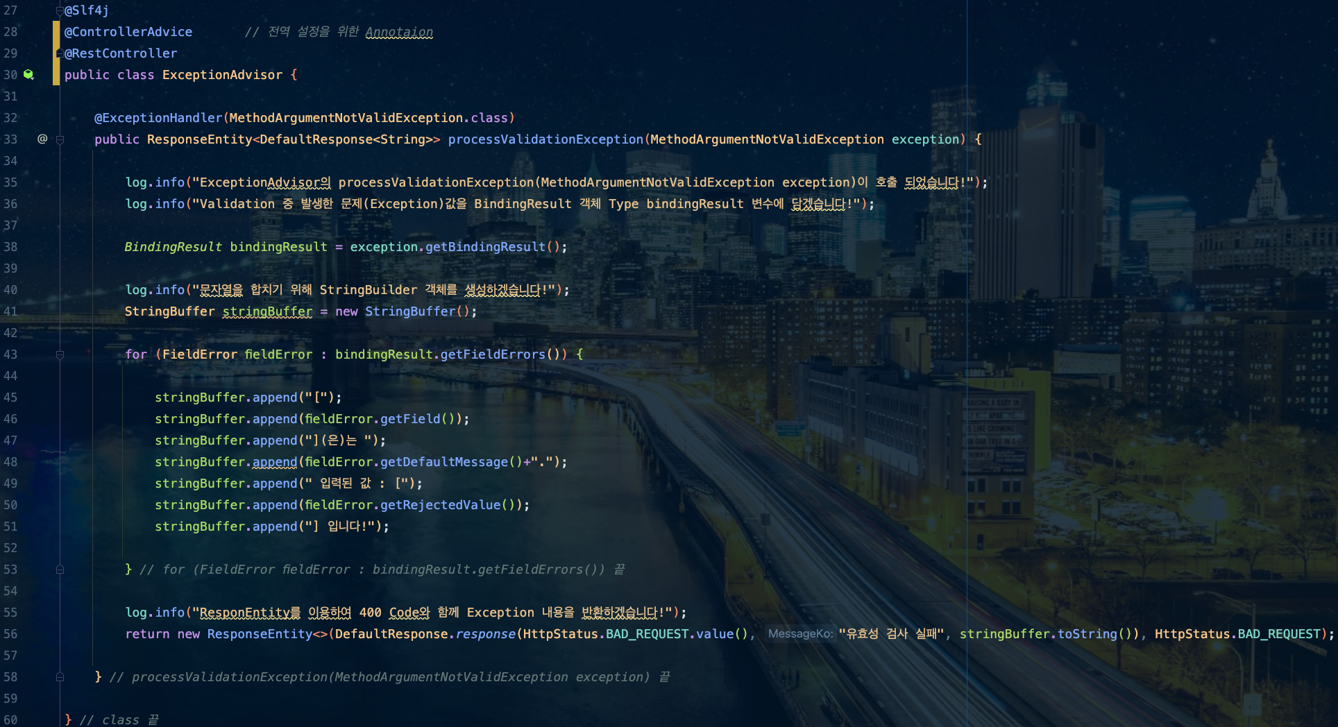 ์ด๋ ๊ฒ ํ๋ฉด RequestBody๋ก ๋ค์ด์ค๋ ๊ฐ์ฒด์ ๋ํ ์ ํจ์ฑ ๊ฒ์ฌ๋ฅผ ์ค์ํ๋ผ๊ณ ์ง์๋ฅผ ๋ด๋ ค์ค ๊ฒ์ด์์.