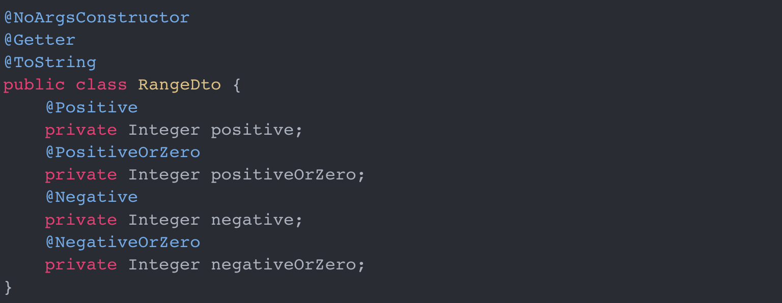 | @NegativeOrZero | 0μ΄κ±°λ, μμμΈ κ°λ§ νμ©. |
