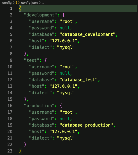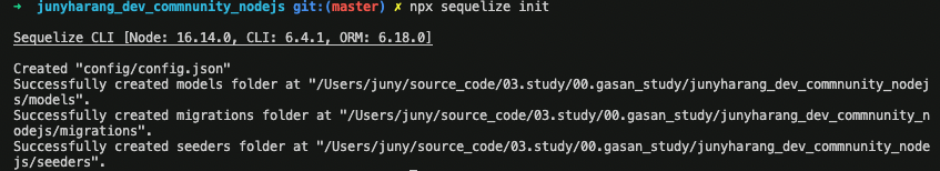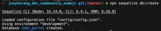 ์์ ๋ช ๋ น์ด๋ฅผ ์ ๋ ฅํด์ `config/config.json`์ ์์ฑํ๋ `development Mode` Data Base ์ ๋ณด์ ํด๋นํ๋ DB๋ฅผ ๋ง๋ค์ด ์ค ์ ์๋ ๊ฒ์ด์์.