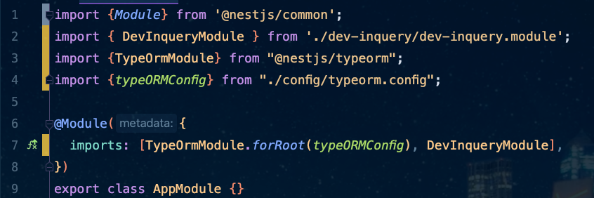 ๋ง์ง๋ง์ผ๋ก `app.module.ts`์ `TypeORM`์ ๋ํ ์ค์ File์ `imports` ์์ผ์ค์ผ ํ๋ ๊ฒ์ด์์.