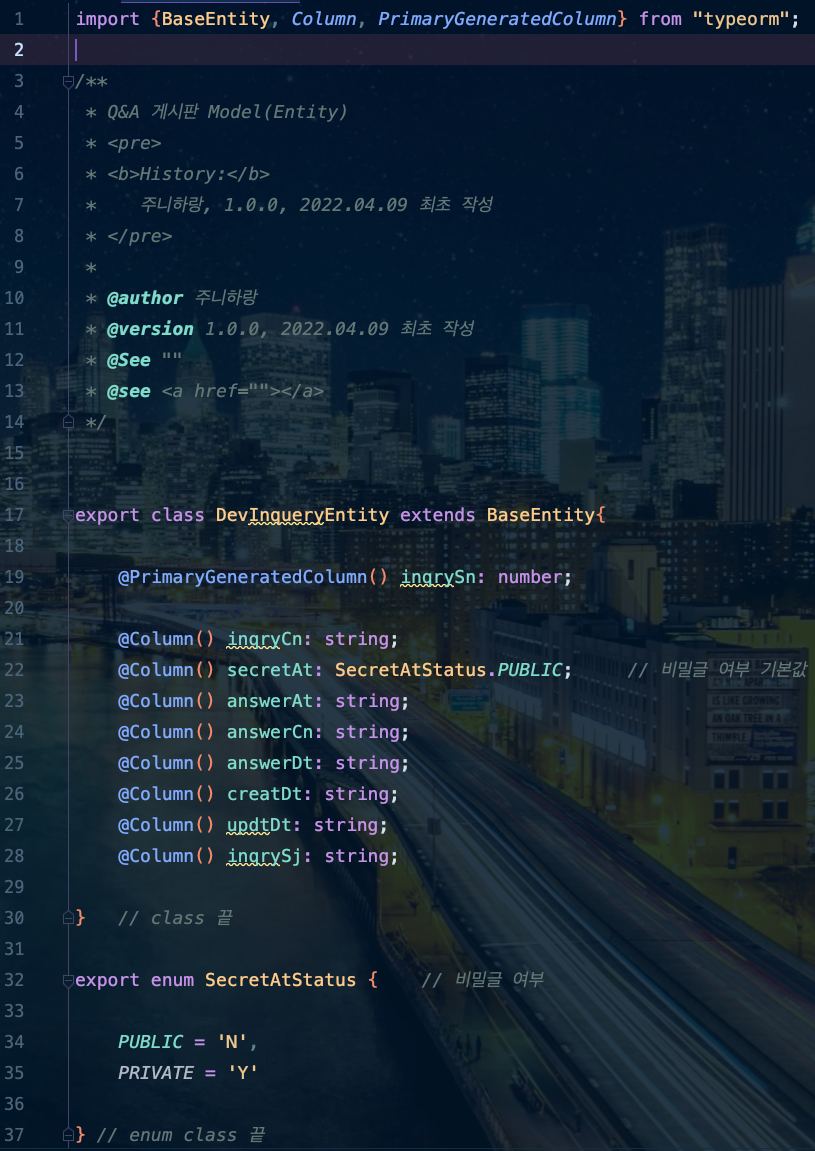 ์ฐธ๊ณ ๋ก `private`์ ์ ์ธํ๋ฉด `devInqueryService Property`๋ `DevInqueryController` Class์์๋ง ์ด์ฉ ๊ฐ๋ฅํ ๊ฒ์ด์์.