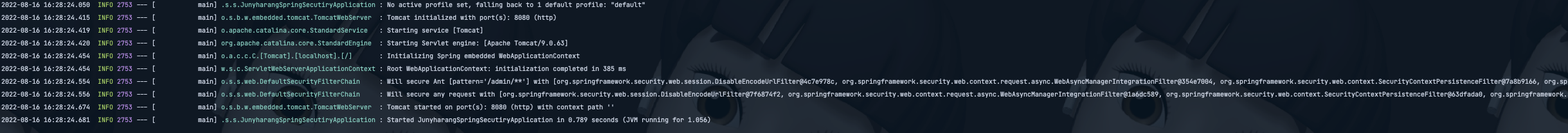 ์ฌ๊ธฐ๊น์ง๊ฐ Spring Security๊ฐ ์ด๊ธฐํ ๋ ๋ ์ผ์ด๋๋ ์ผ์ด์์.