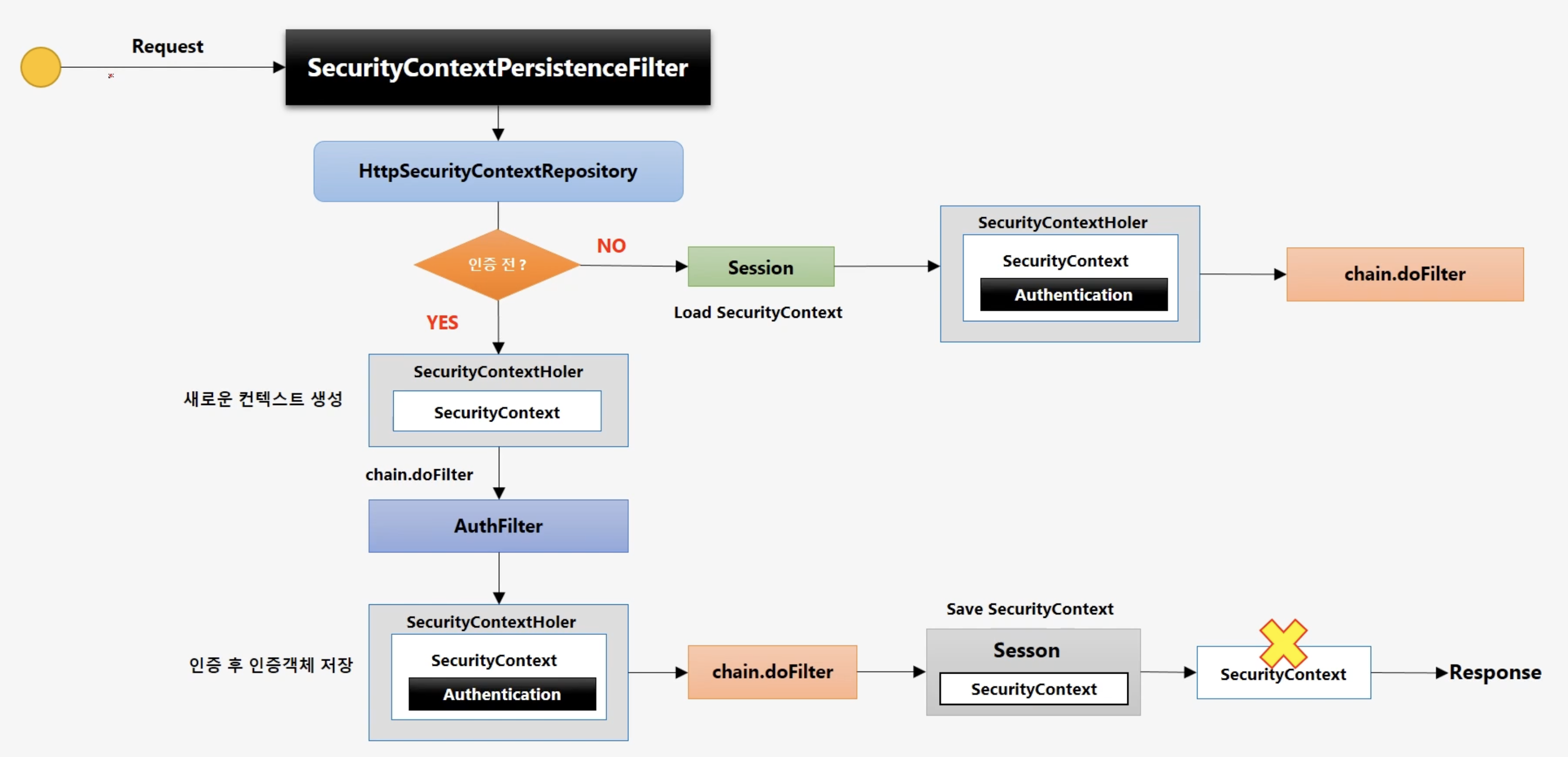 SecurityContextPersistenceFilter๋ HttpSessionSecurityContextRepository๋ฅผ ๊ฐ์ง๊ณ ์์ด์.