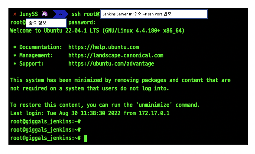 ๋จผ์ Jenkins Server์ ์ฃผ๋ํ๋์ ssh๋ก ์ ์ํ์์ด์.