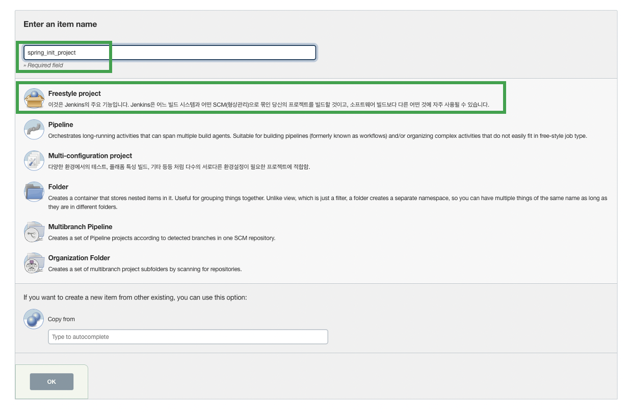 Main ํ๋ฉด์์ ์์ ๊ฐ์ด ์๋ก์ด Item์ผ๋ก ์ด๋ํ ๋ค item name์ ์ ์ด์ฃผ๊ณ , Freestyle project๋ฅผ ๋๋ฌ์ฃผ์ธ์.