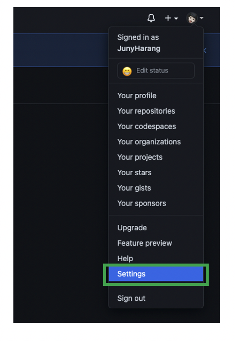์ต์ด GitHub์์ Settings -> Developer settings๋ฅผ ๋ค์ด๊ฐ ์ฃผ์ธ์.