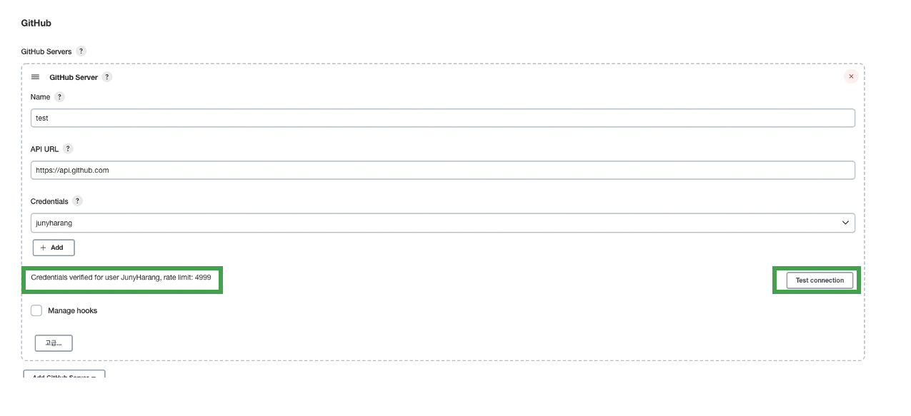 ์๋์ชฝ์ผ๋ก ์ด๋ํ์ฌ GitHub์์ Add GitHub Server๋ฅผ ๋๋ฌ GitHub Server๋ฅผ ์ ํํด ์ฃผ์ธ์.