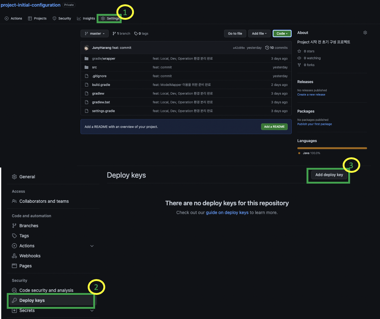 ๋น๋ ํ๊ฒฝ์์ ์ฃผ๋ํ๋์ Java Spring Gradle๋ก CI/CD๋ฅผ ํ ๊ฒ์ด๊ธฐ ๋๋ฌธ์ ์์ ๊ฐ์ด ์ ํ์ ํด ์ฃผ์์ด์.