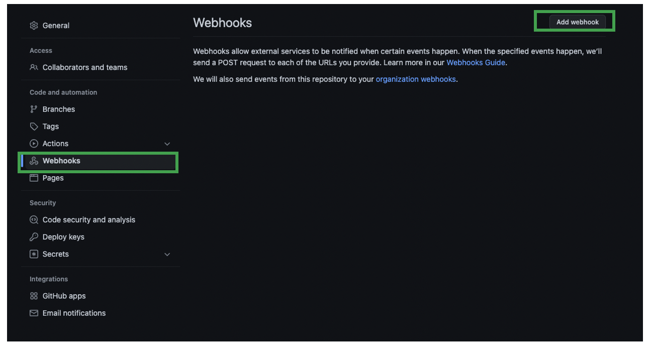 ์์ ๊ฐ์ด ์ค์ ํ๊ณ , Add Webhook์ ๋๋ฌ์ค๋๋ค.